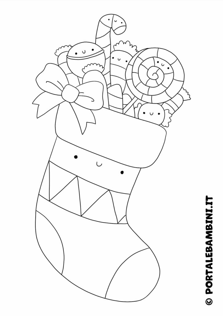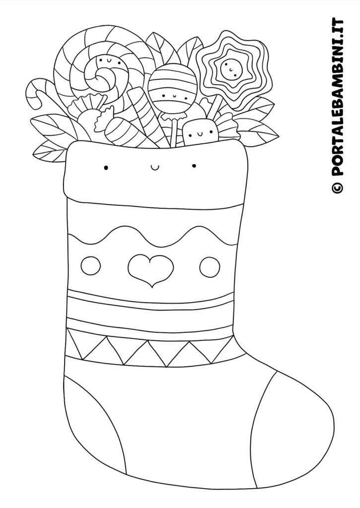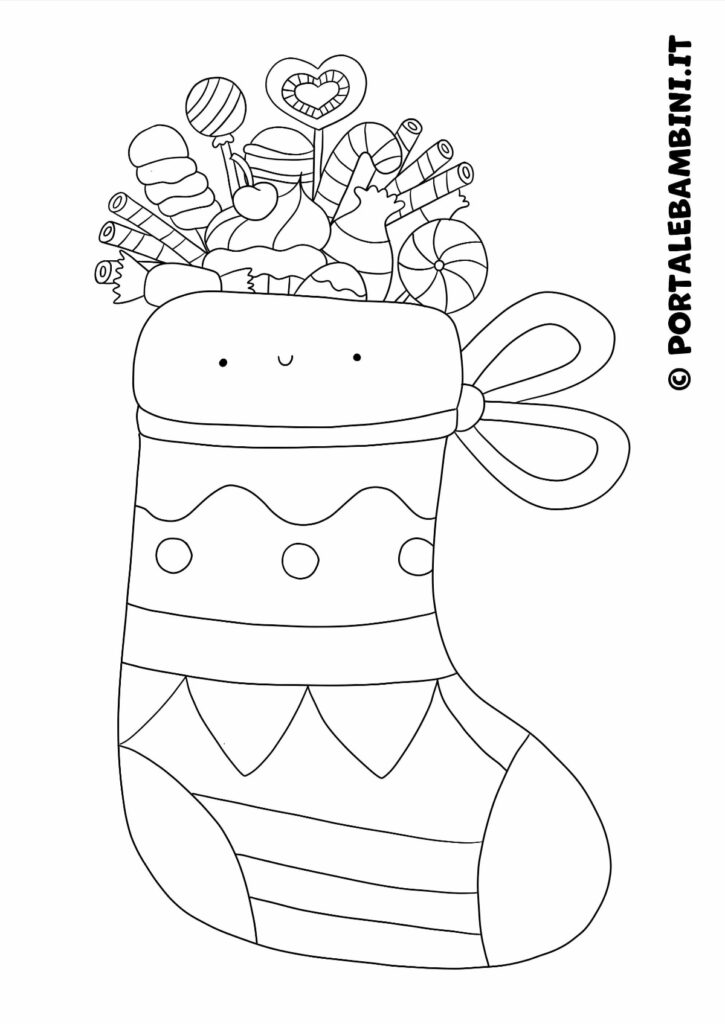 Calza della Befana da colorare. In questo articolo troverete tanti disegni di calza della Befana da stampare e colorare.