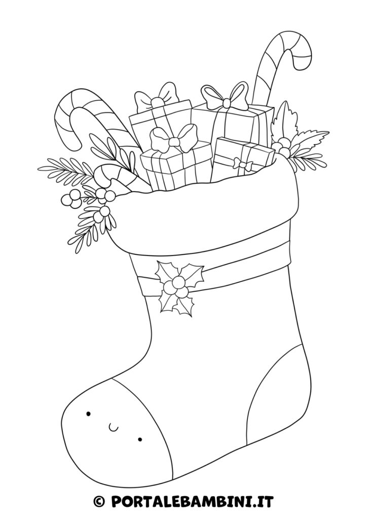 In questo articolo troverete tanti disegni di calza di Natale da colorare.