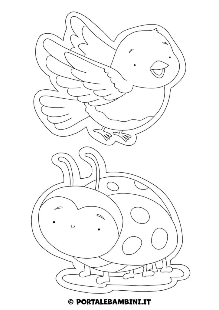 Queste sagome si possono utilizzare sia come addobbi per l’aula che come sticker, da colorare e incollare sul quaderno: potete distribuirle ai bambini come premio al termine di un’attività didattica a tema primaverile.