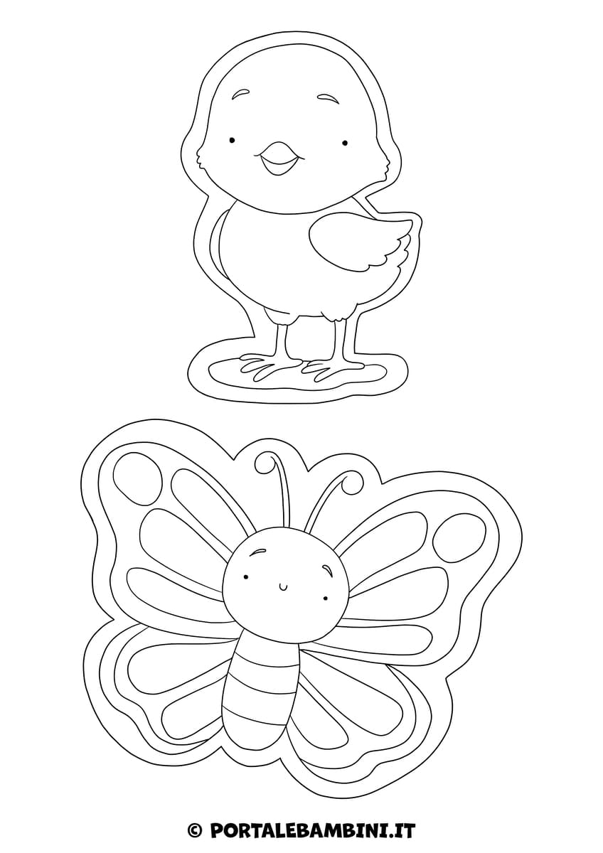 Queste sagome si possono utilizzare sia come addobbi per l’aula che come sticker, da colorare e incollare sul quaderno: potete distribuirle ai bambini come premio al termine di un’attività didattica a tema primaverile.