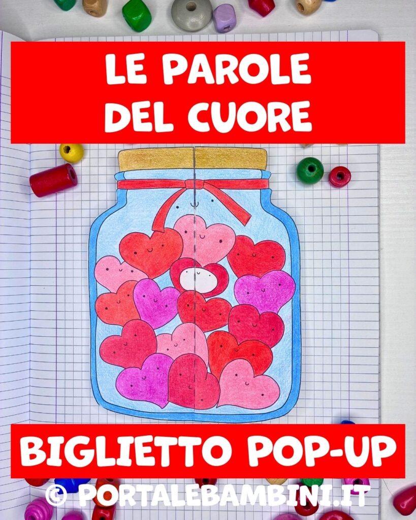 Le parole del cuore: un biglietto pop-up all’interno del quale i bambini potranno scrivere le proprie parole del cuore, per costruire un vocabolario dell’affetto e del rispetto. La matrice è disponibile sia nella versione a colori che in bianco e nero.