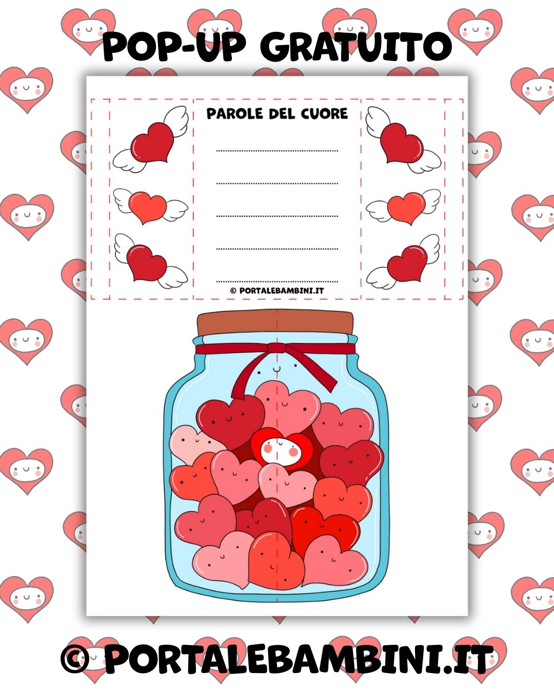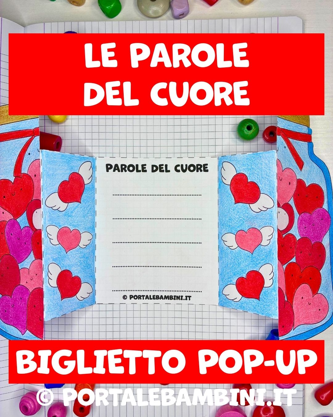Le parole del cuore: un biglietto pop-up all’interno del quale i bambini potranno scrivere le proprie parole del cuore, per costruire un vocabolario dell’affetto e del rispetto. La matrice è disponibile sia nella versione a colori che in bianco e nero.