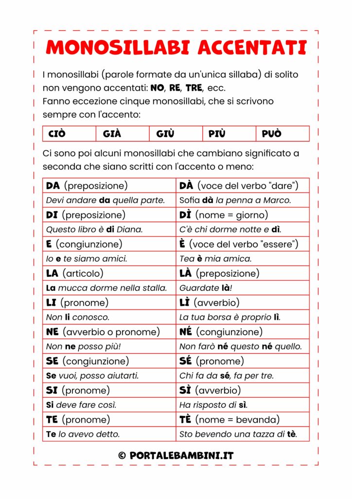 In questa sezione puoi trovare le nostre schede didattiche e il materiale per il ripasso dei monosillabi accentati.