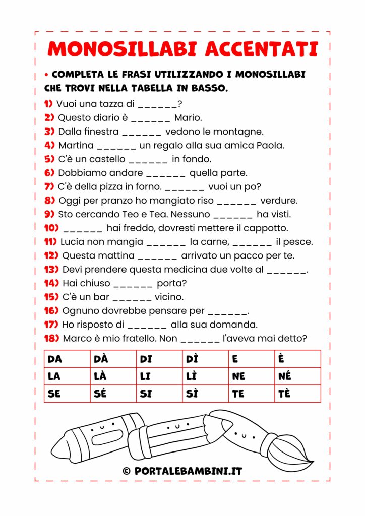 Tag: monosillabi accentati, esercizi, scuola primaria