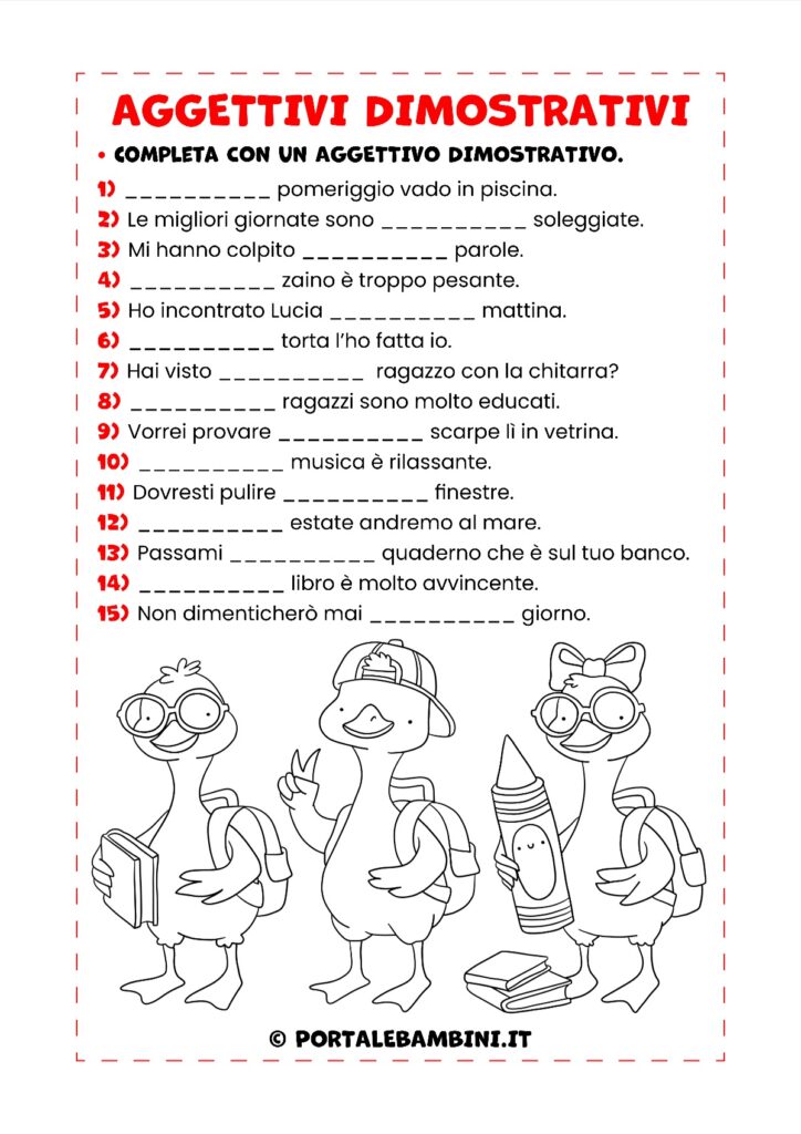 In questo articolo troverete le nostre schede didattiche sugli aggettivi dimostrativi per i bambini della scuola primaria.