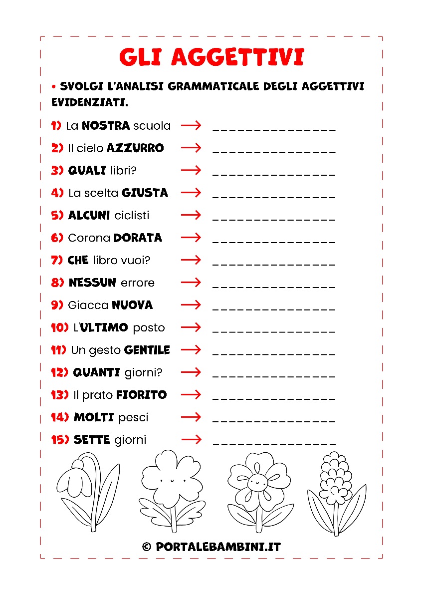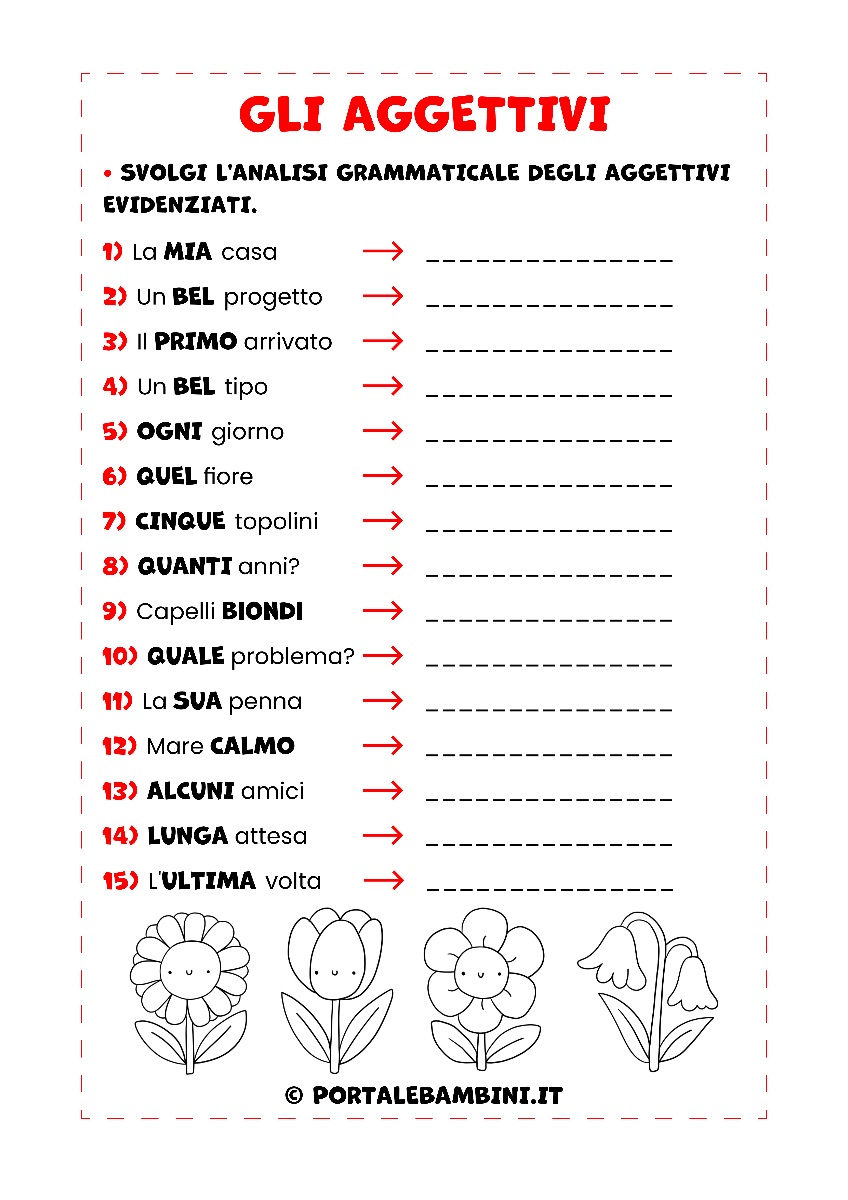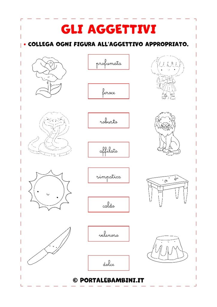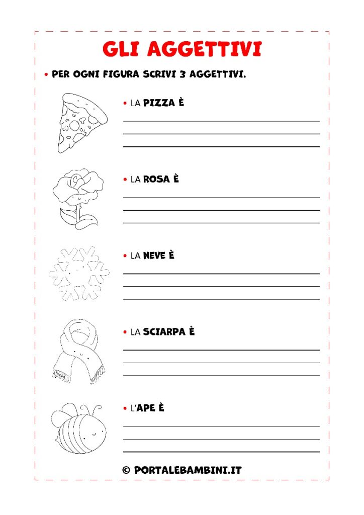 In questa sezione potete trovare tanti esercizi per il ripasso degli aggettivi qualificativi e possessivi e le relative schede didattiche da stampare. Sotto il titolo di ciascuna scheda c’è il link per scaricare gli esercizi in formato PDF, pronti per la stampa.