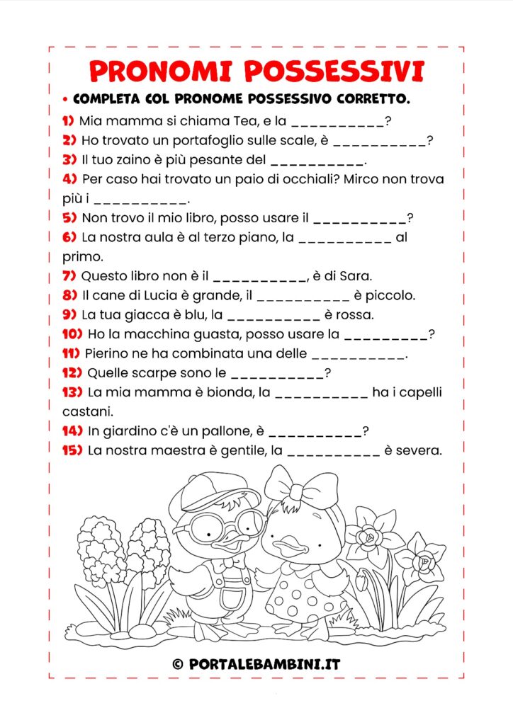 In questo articolo troverete le nostre schede didattiche sui pronomi possessivi per i bambini della scuola primaria.