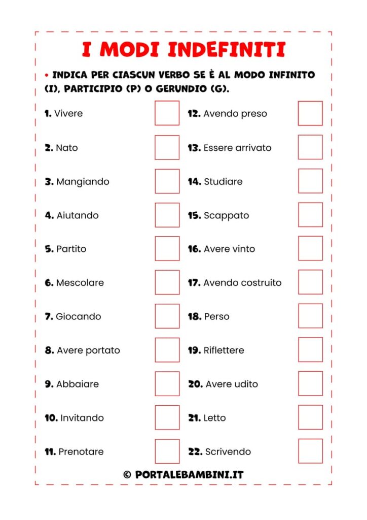 I modi indefiniti. Esercizi per la scuola primaria