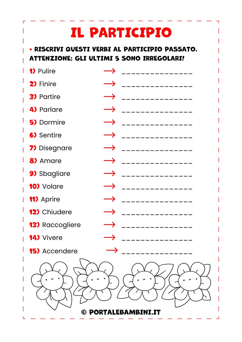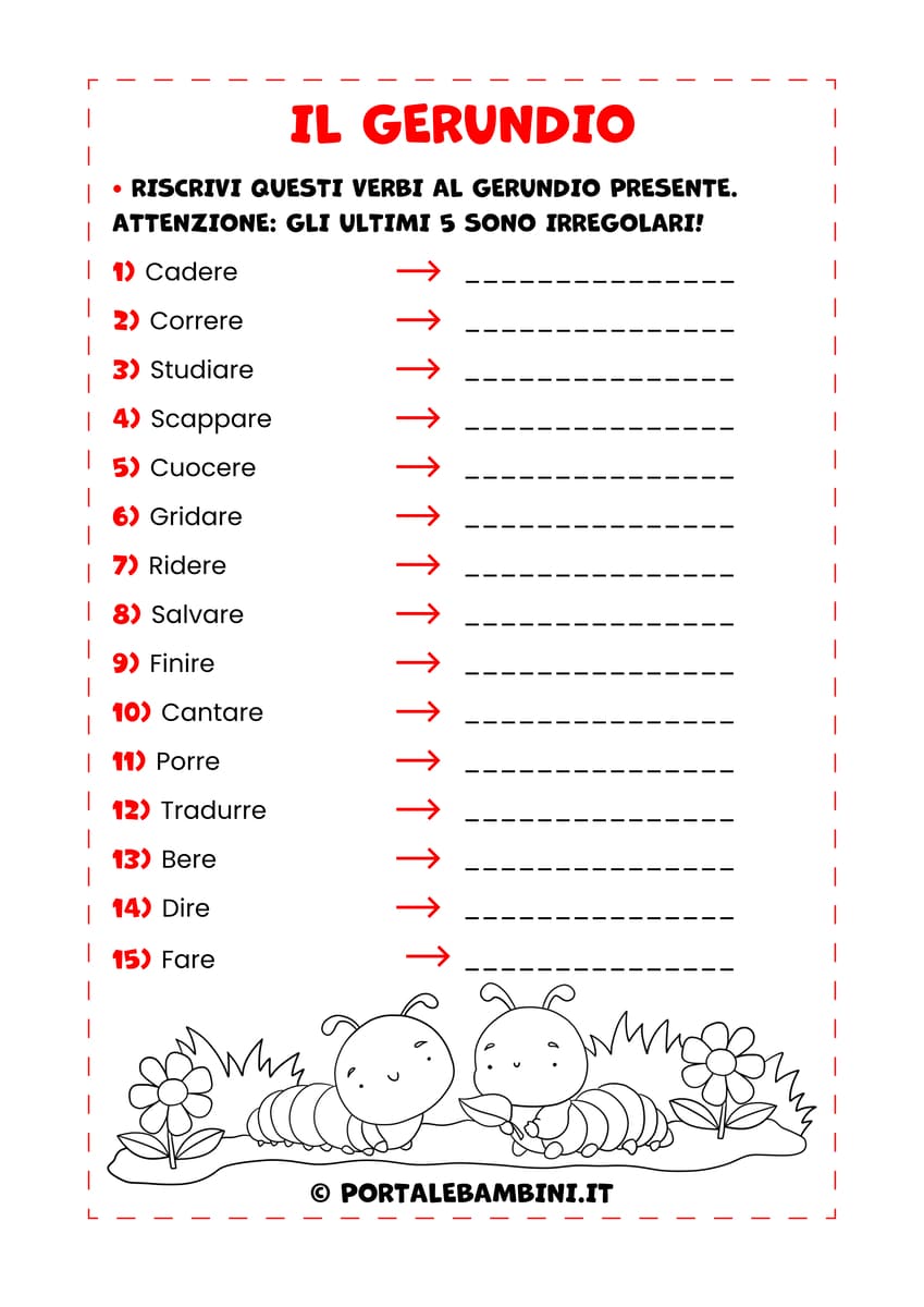Per aiutarvi a consolidare questo argomento, abbiamo preparato una nuova raccolta di schede didattiche gratuite dedicate a infinito, participio e gerundio. Il percorso è pensato con un livello di difficoltà crescente, perfetto per accompagnare i bambini passo dopo passo.