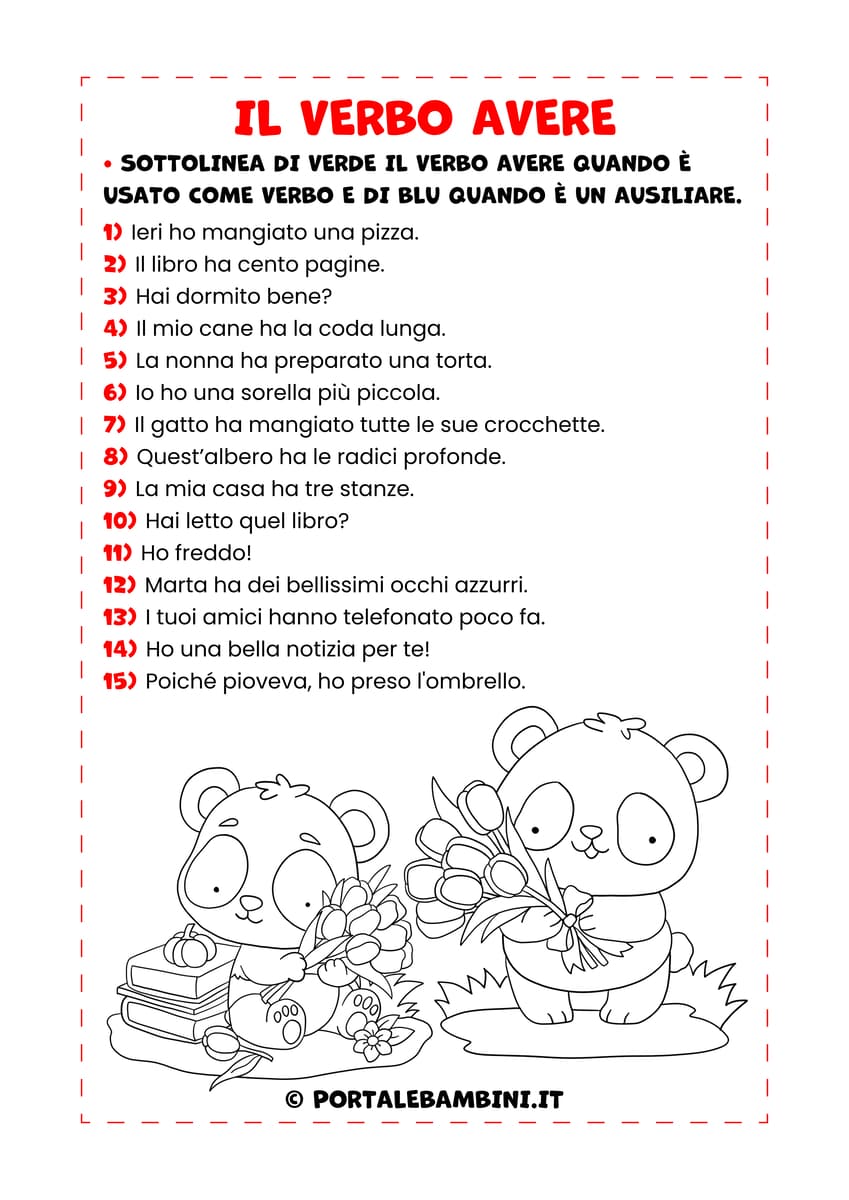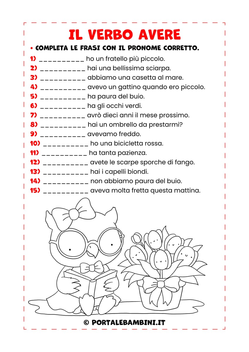 Il verbo avere. Esercizi per la scuola primaria