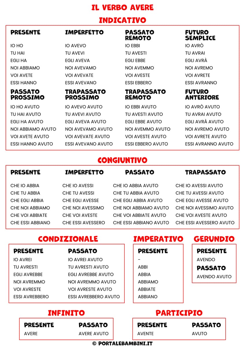 Il verbo avere è uno dei due verbi ausiliari della lingua italiana e uno dei primi verbi dei quali si studia la coniugazione (fondamentale per parlare correttamente la nostra lingua). In questo articolo puoi trovare la sua coniugazione e i materiali stampabili.