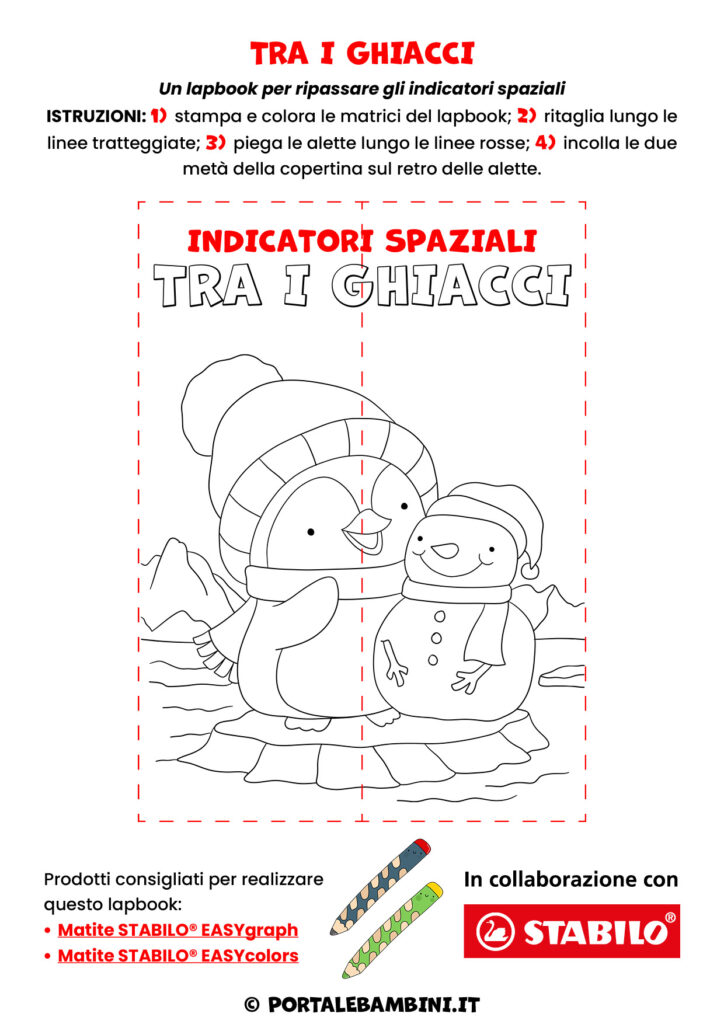 “Tra i ghiacci” è un lapbook sugli indicatori spaziali che abbiamo realizzato in collaborazione con STABILO®. Da questa pagina potrete scaricare gratuitamente le matrici da stampare per realizzarlo.
