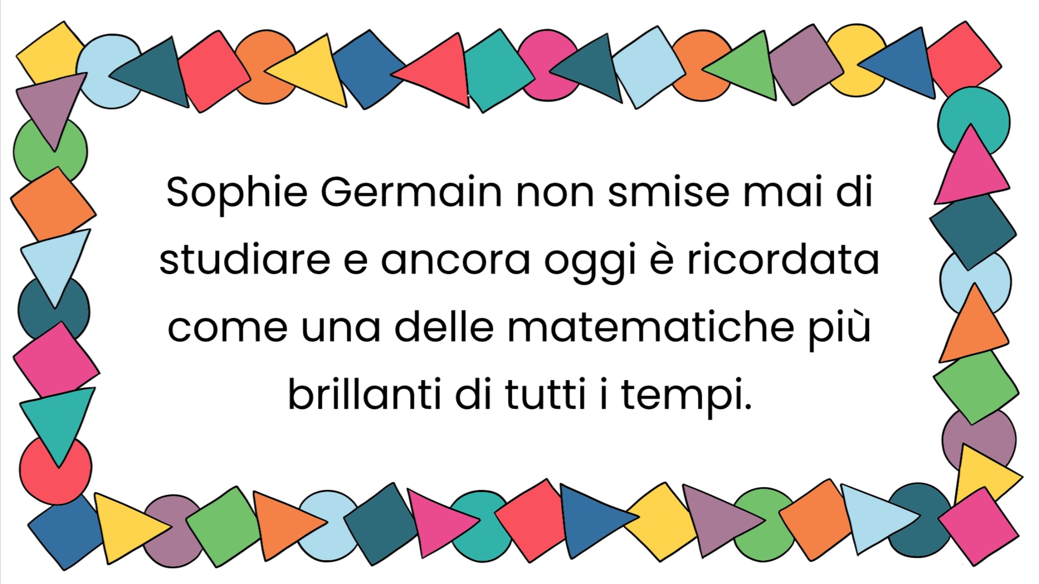 La storia di Sophie Germain è disponibile anche in formato illustrato da proiettare sulla LIM. Per scaricare le slide, vi basterà cliccare sul pulsante qui sotto: